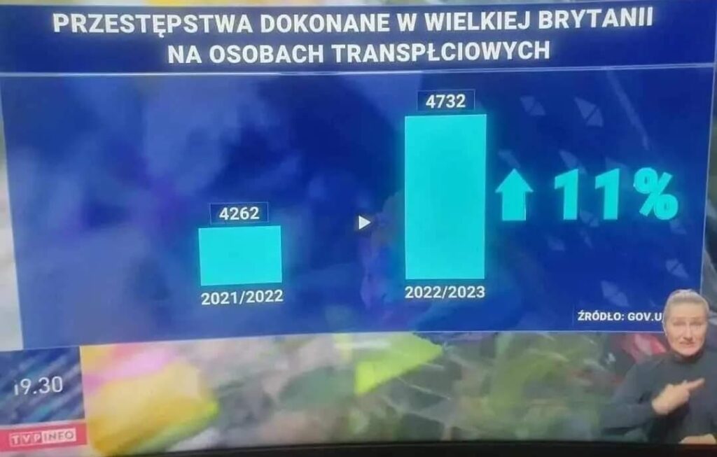 Znów klasyczny przykład, w którym oś Y zaczyna się w przypadkowym miejscu – czy raczej takim, by różnica wydawała się znacznie większa, niż w rzeczywistości. Oczywiście wzrost 11% można potraktować jako duży, ale już lepiej było pokazać jedynie tę wartość (wraz z liczbą przestępstw), rezygnując ze słupków.