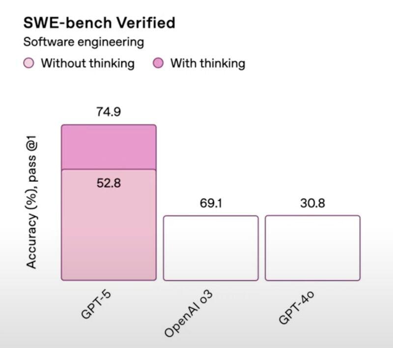 Oczywiście tego typu pomyłki mogą się zdarzyć, czy w takim razie warto ten przypadek w ogóle omawiać? Zdecydowanie! Po pierwsze, nie mówimy tu o jakiejś wewnętrznej prezentacji dla zarządu, ale o dużym wydarzeniu, które śledziło sporo osób. Po drugie, z dużym prawdopodobieństwem omawiany wykres został stworzony przez prezentowany (reklamowany!) model ChatGPT5 (without thinking?). Gdyby był robiony przy pomocy jakiegoś narzędzia do tworzenia wykresów, raczej ciężko o taki błąd.
