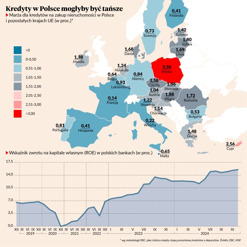 Problem z dolnym wykresem jest taki, że ostatnie dwa lata zajmują więcej miejsca niż pierwsze cztery. Mimo że wartości ROE były stosunkowo niskie przez większość okresu 2019-2024, to wrażenie jest inne. W szczególności ROE powyżej 7% to prawie 60% długości wykresu, gdy w rzeczywistości takie wartości były przez 33% całego pokazanego czasu.